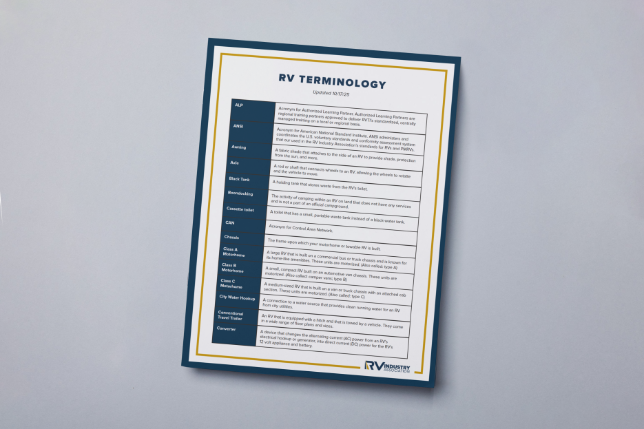 We know joining a new industry can be overwhelming, especially one as dynamic, innovative, and interconnected as the RV industry. That’s why the Emerging Leaders Coalition's Training and Development Task Force created this suite of educational resources — designed to help new professionals quickly get up to speed and feel confident navigating the world of RVs.