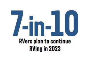 Looking further into views toward RVing, Kampgrounds of America, Inc.’s May report indicated continued staying power among RVers. Seven-in-10 RVers plan to continue RVing in 2023, with almost half (47%) indicating they will take more RV trips this year versus other types of travel – a 20-point increase since January.