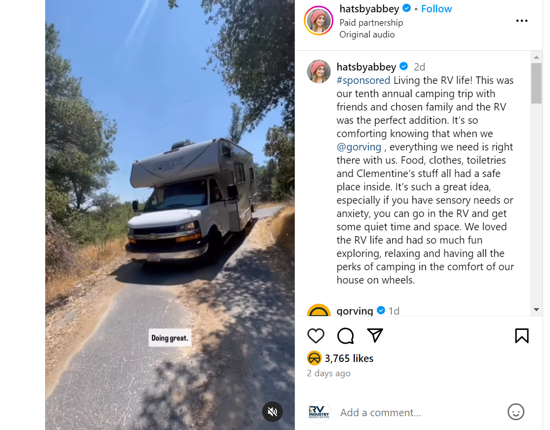 Go RVing has also partnered with Sally Butan, Abbey Romeo, Jess Darington, and Tanairi Amador. Take a look below at the content they've created to highlight the joys of RVing.